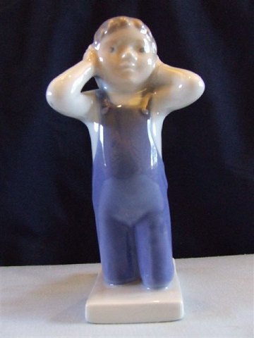 Royal Copenhagen Figurine "Hear No Evil" No 5461. Measures 13cm and is in good condition. Designed by Hanne Varming.