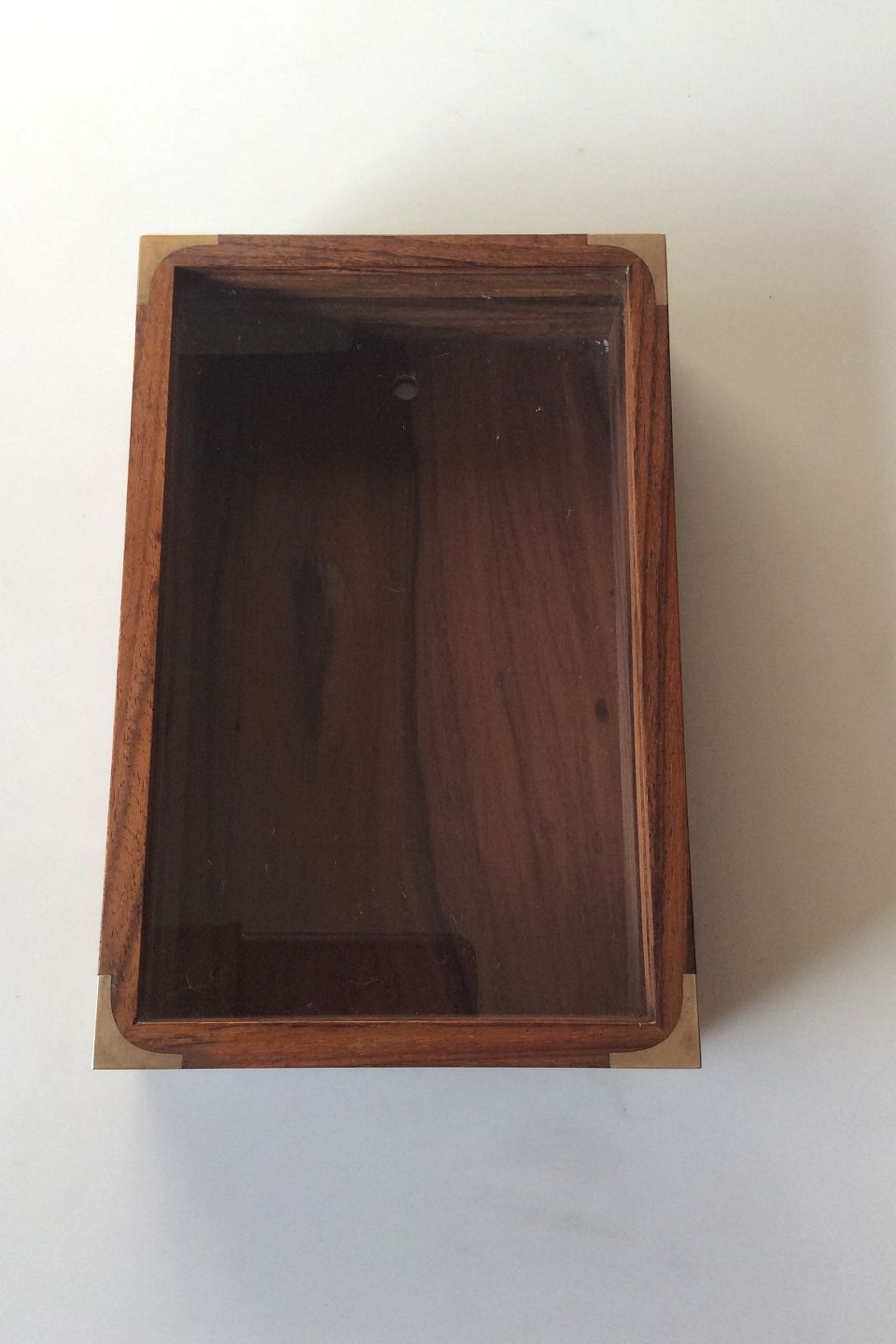 Hans Hansen Rosewood Box with Silver Corners. Lid with mounted glass. Measures 22.5 x 14.8 x 4.8 cm / 8 55/64 x 5 53/64 x 1 57/64"