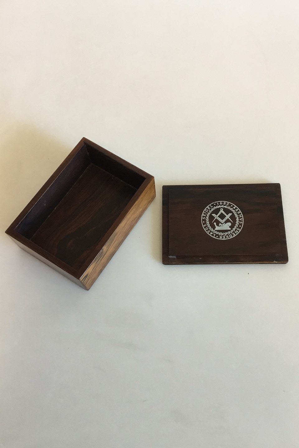 Klitgaard Rose wood Box with silver inlay in the lid. Measures 9.7 cm / 3 13/16 in. x 7 cm / 2 3/4 in. x 3.8 cm / 1 1/2 in.