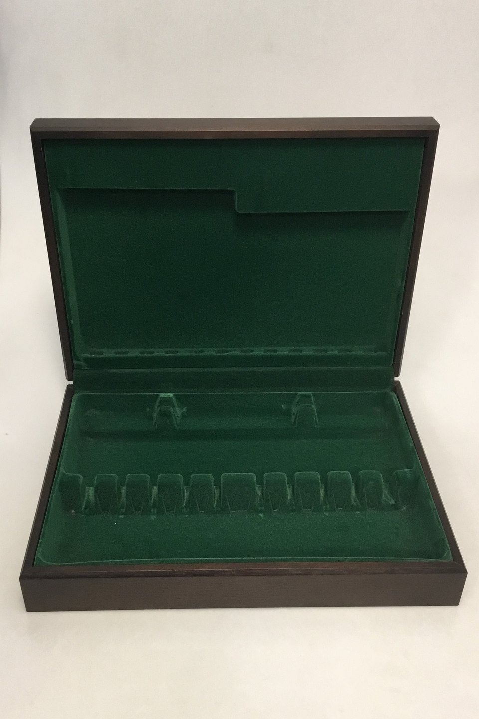 Dark wood cutlery box with space for cutlery for 6 persons/44 pcs. Measures 39 cm / 15 23/64 in. x 28 cm / 11 1/32 in. x 8.5 cm / 3 11/32 in.