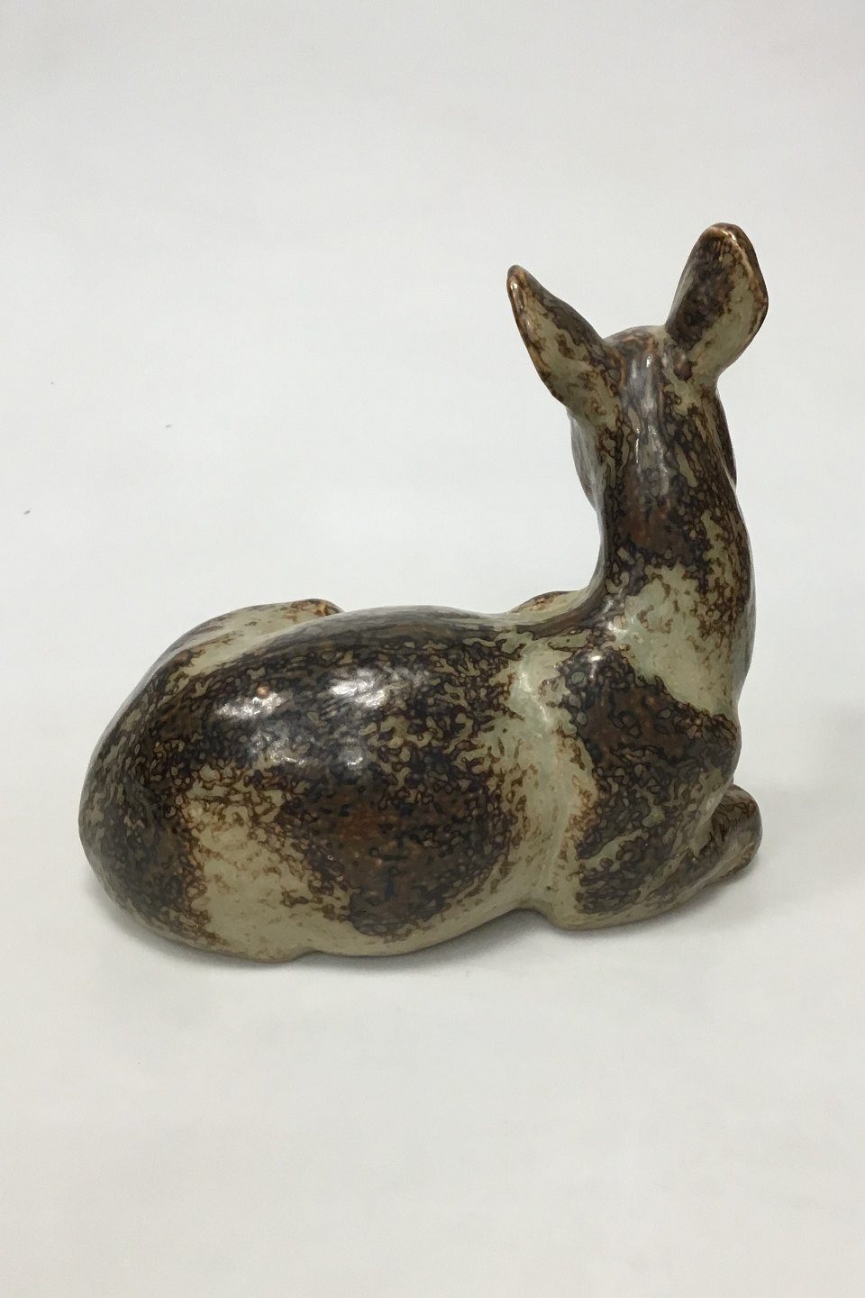 Royal Copenhagen Stoneware Figurine of lying young deer No 20506. Designed by Knud Kyhn. Measures 24 cm / 9 29/64 in.