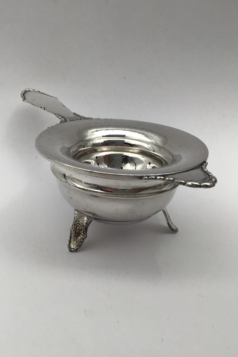 CTC/Danish Silver Christiansborg Tea Strainer and Stand Measures Strainer L 15 cm (5.90 inch) Stand Diam 6.5 cm (2.55 inch) H 4.5 cm (1.77 inch) Combined Weight 78 gr (2.75 oz)