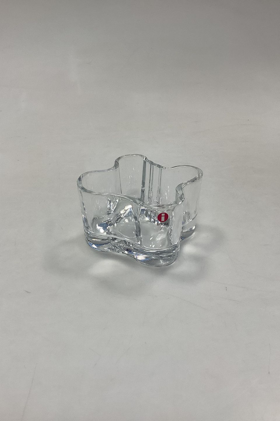 Iittala Tealight Candle Holder in clear glass. Designed by Alvar Aalto.