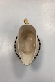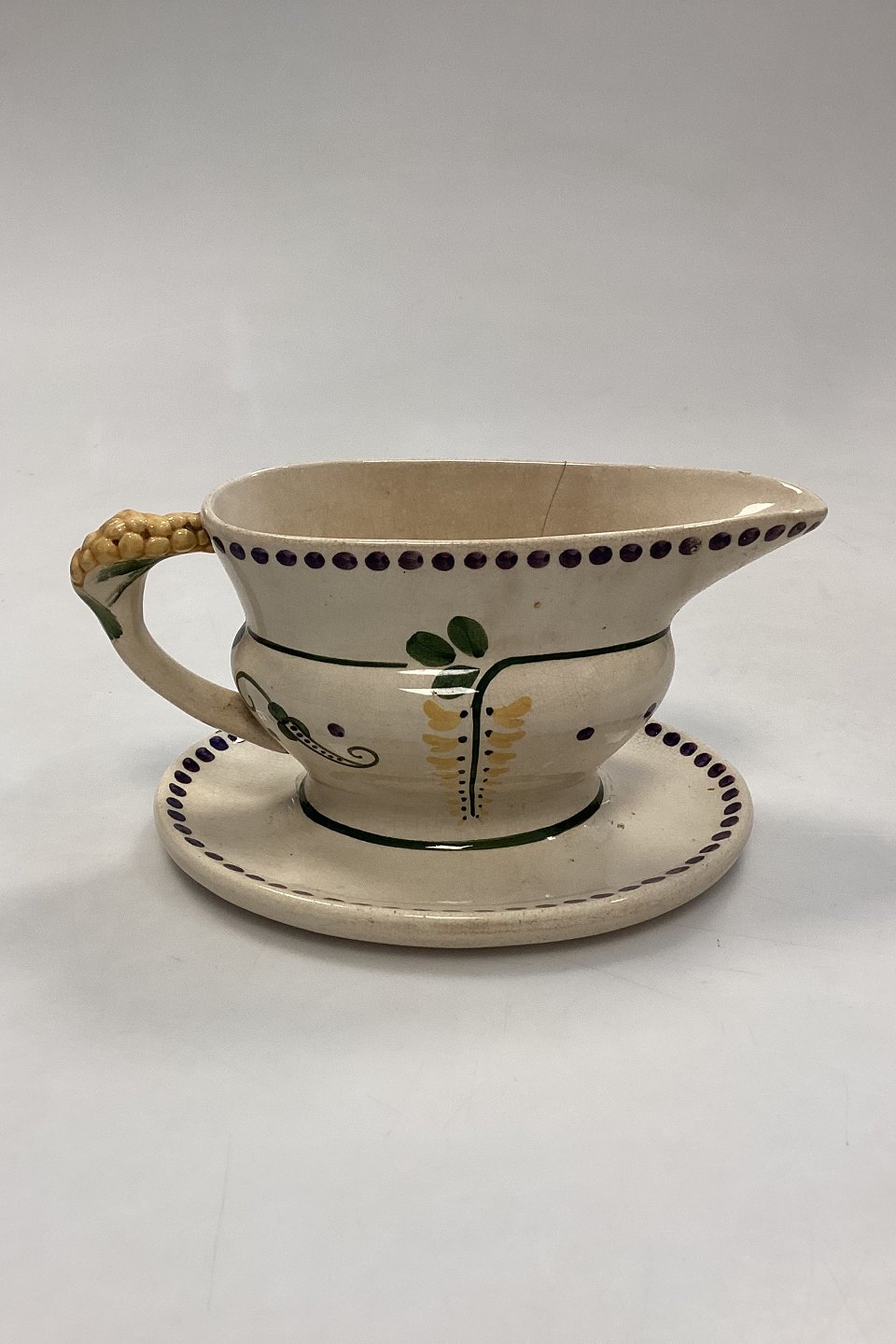 Aluminia Guldregn (Laburnum) Sauce Bowl with solid base No. 10/189. Cracks, hairline cracks and chipping on the edge, see photo. Designed by Harald Slott-Møller 1902.