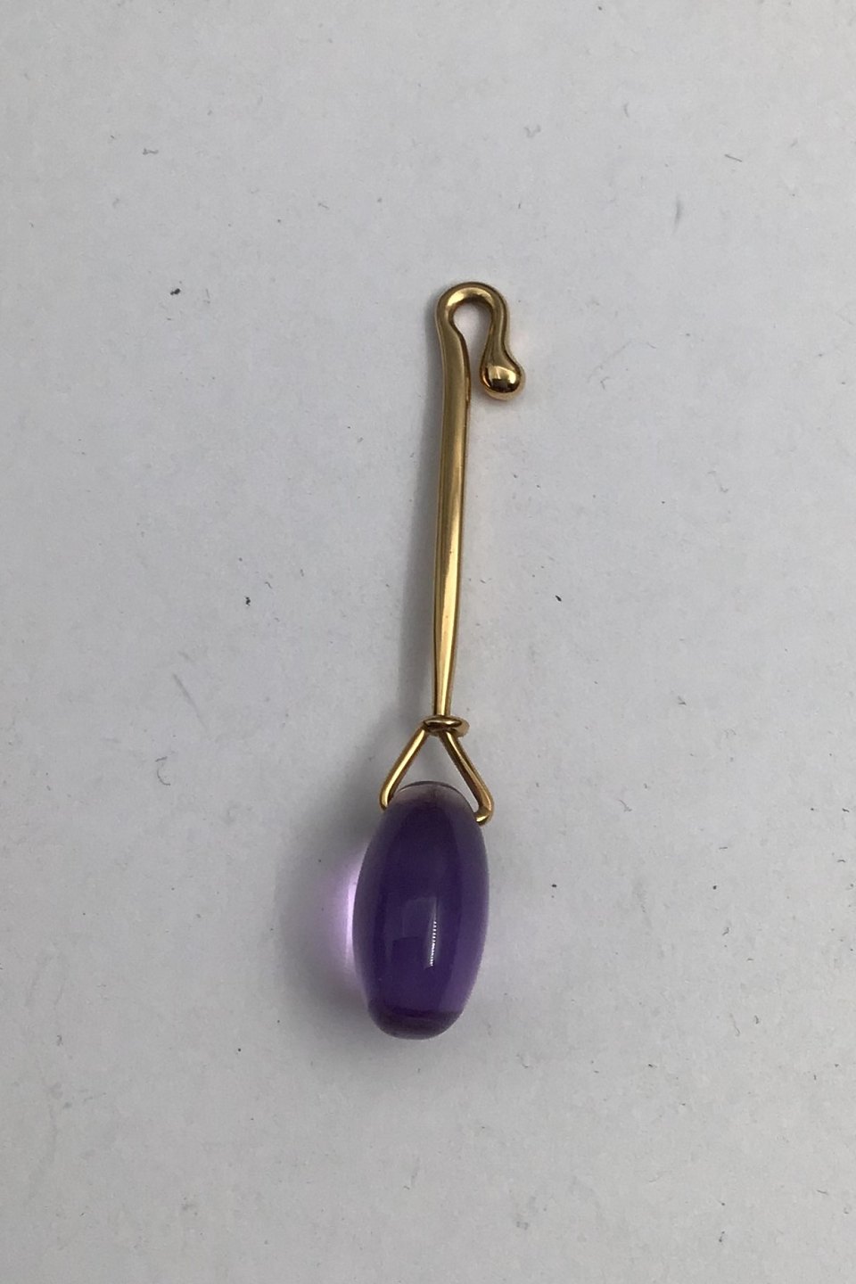 Georg Jensen 18K Gold Pendant Dew Drop No. 1128 Amethyst Torun