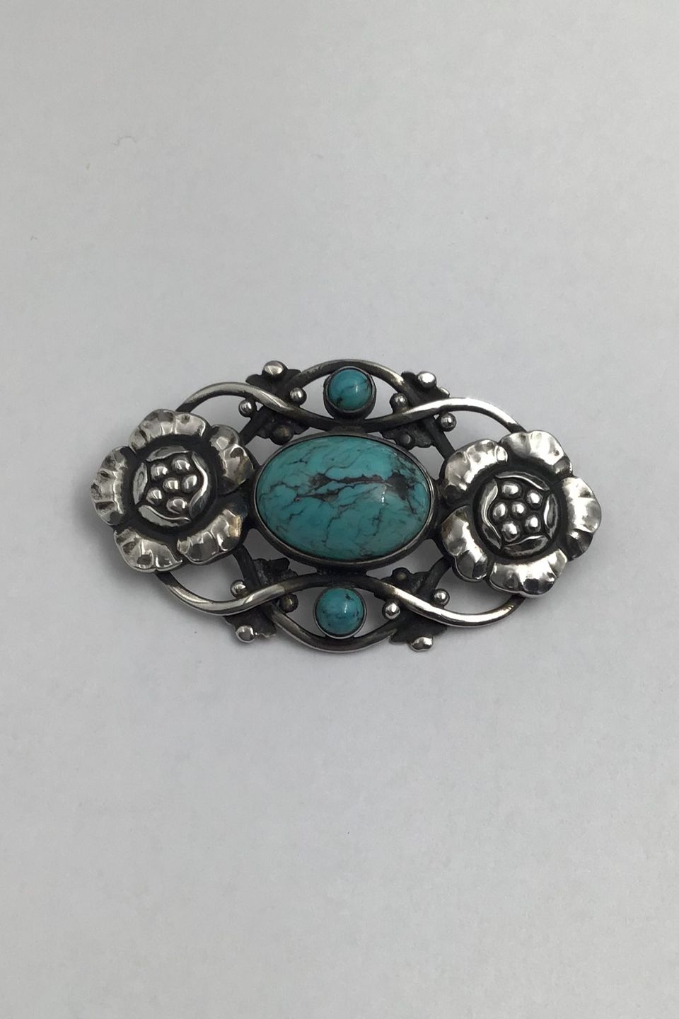 Georg Jensen Sterling Silver Brooch No. 89 (Turquoise) Measues 5.7 cm x 3.2 cm (2.24 inch x 1.25 inch) Weight 13.65 gr (0.48 oz)