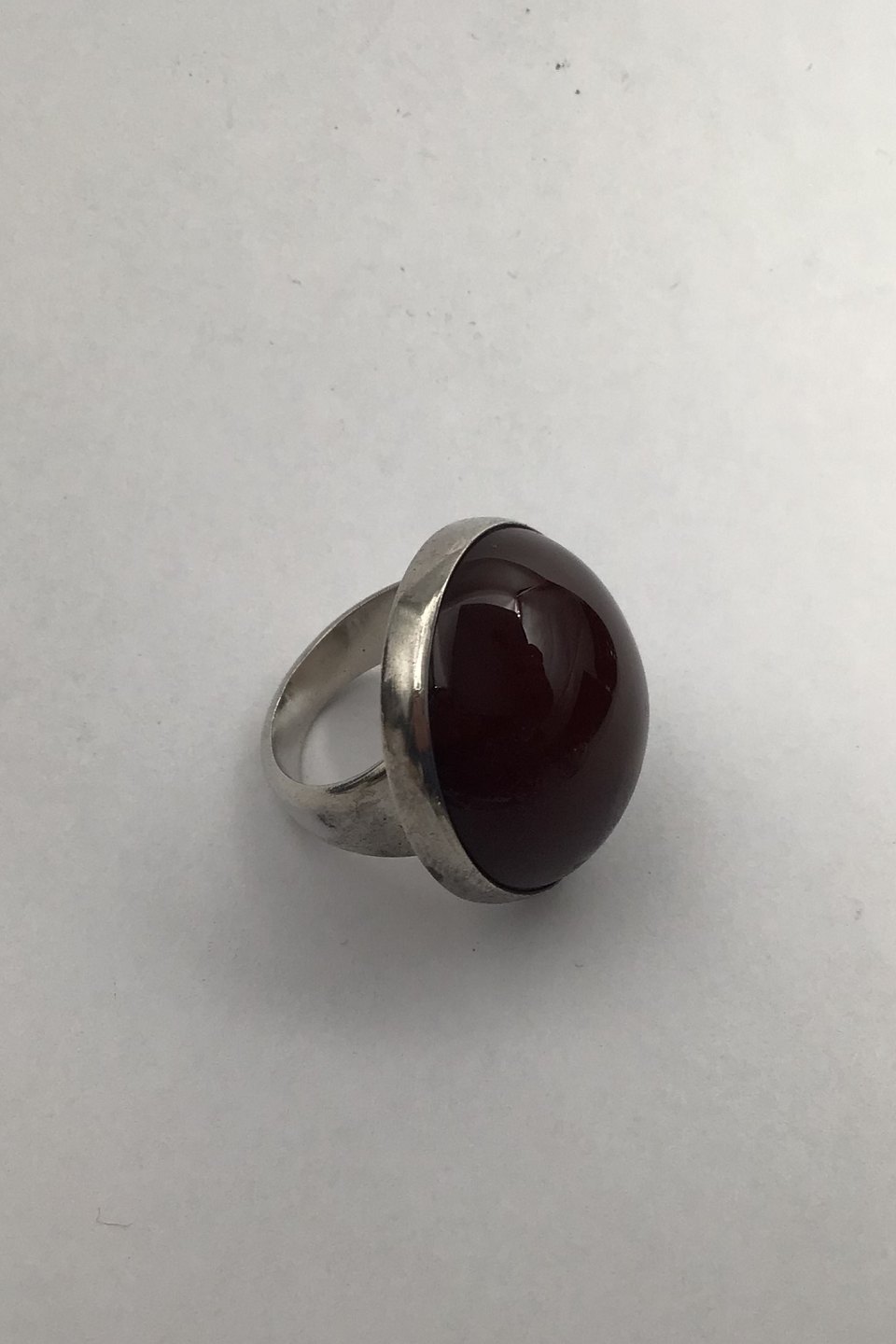 Georg Jensen Sterling Silver Ring No. 90 C (Red Brown Agate) Measures Diam 2.5 cm (0.98 inch) Ring Size 49 (US 5) Weight 14.8 (0.52 oz)