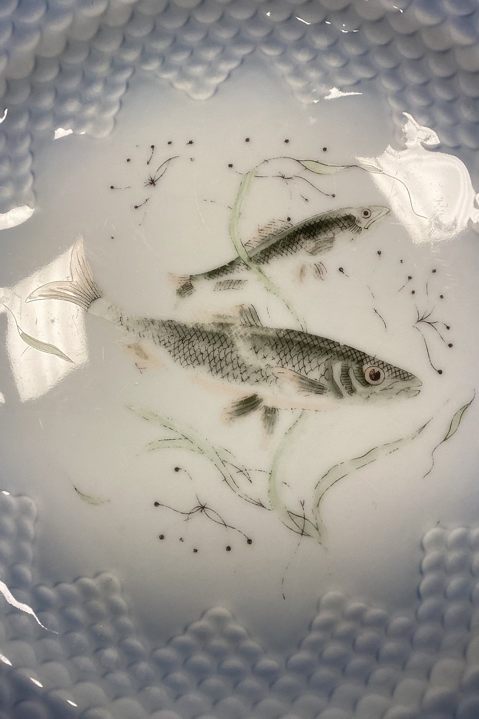 Bing and Grøndahl Blue Tone Fish Plate motif 1 Herring No. 716 - CHIPED/WORN