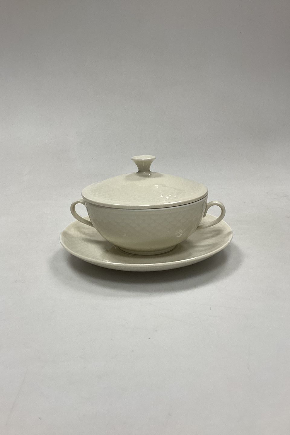 Bing and Grøndahl Elegance Cream Bouillon Cup with Lid and Saucer No. 247