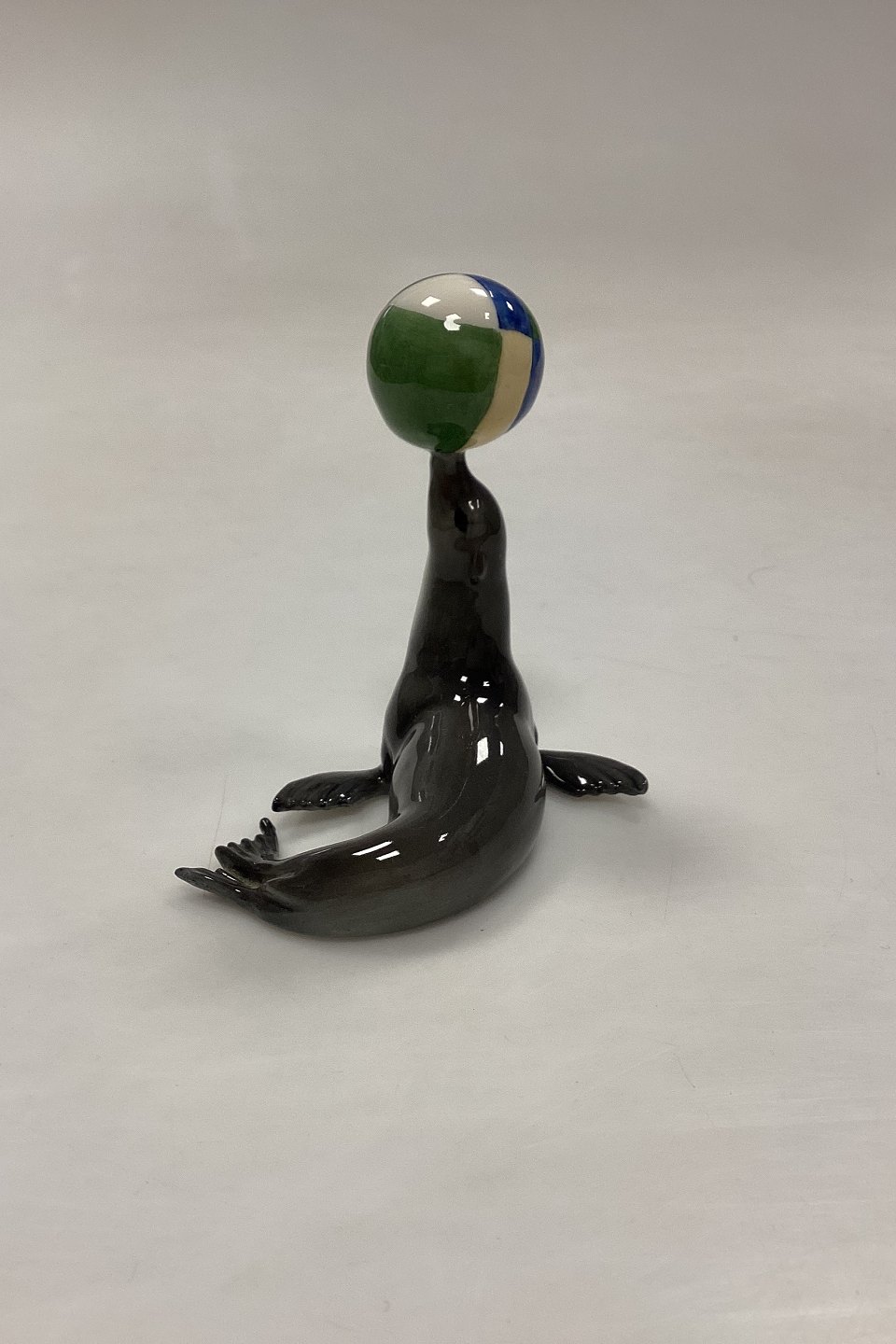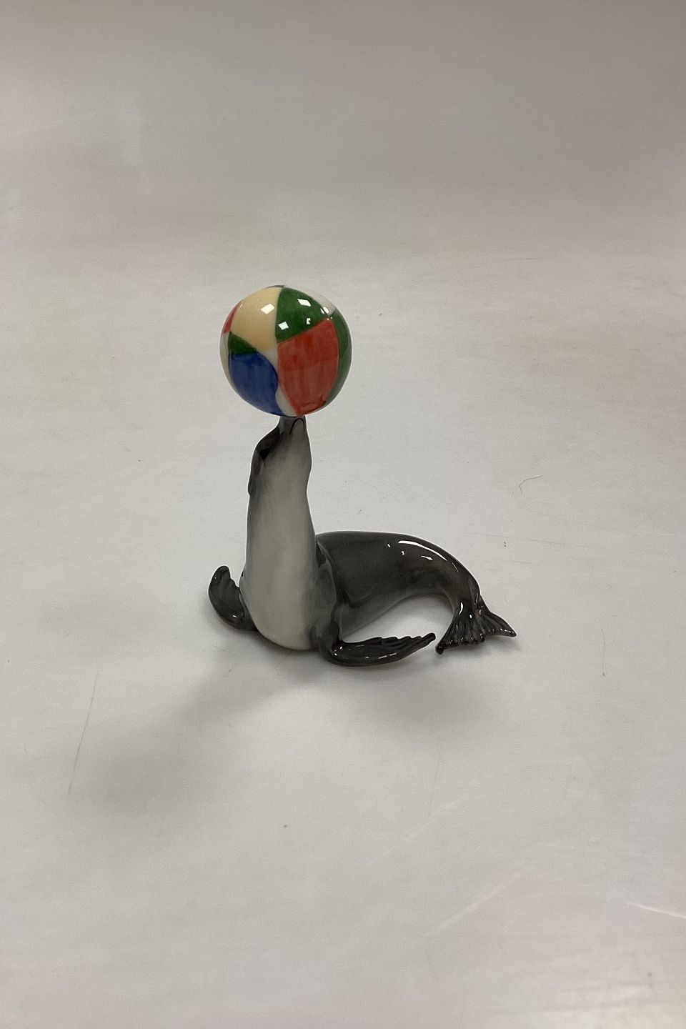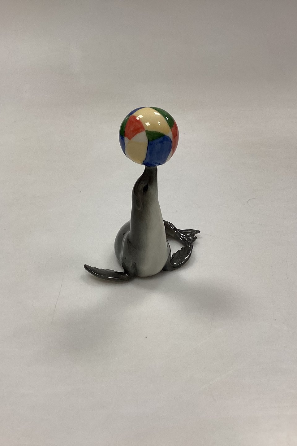 Royal Copenhagen Figurine - Sea Lion with Ball No. 202. Figurine from the Mini Circus Collection. Designed by Svend Vestergaard from 2015-2019. Measures 10 cm / 3.93 in.