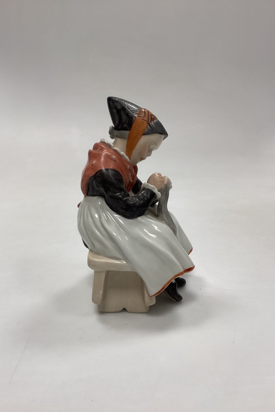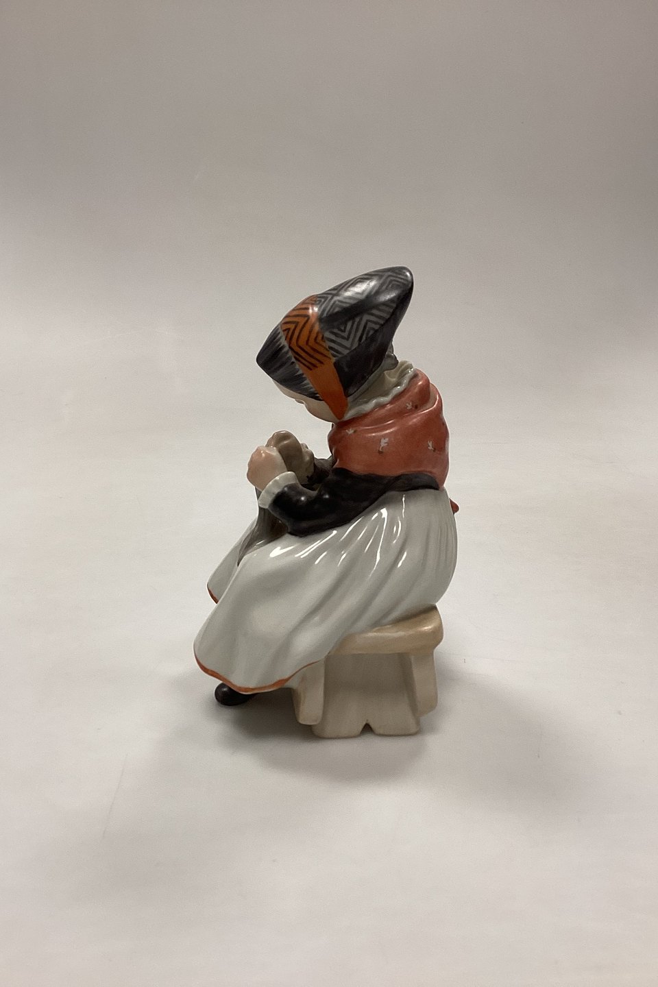 Royal Copenhagen Figurine - Amager Girl Knitting No. 1314. Designed by Lotte Benter in 1911.