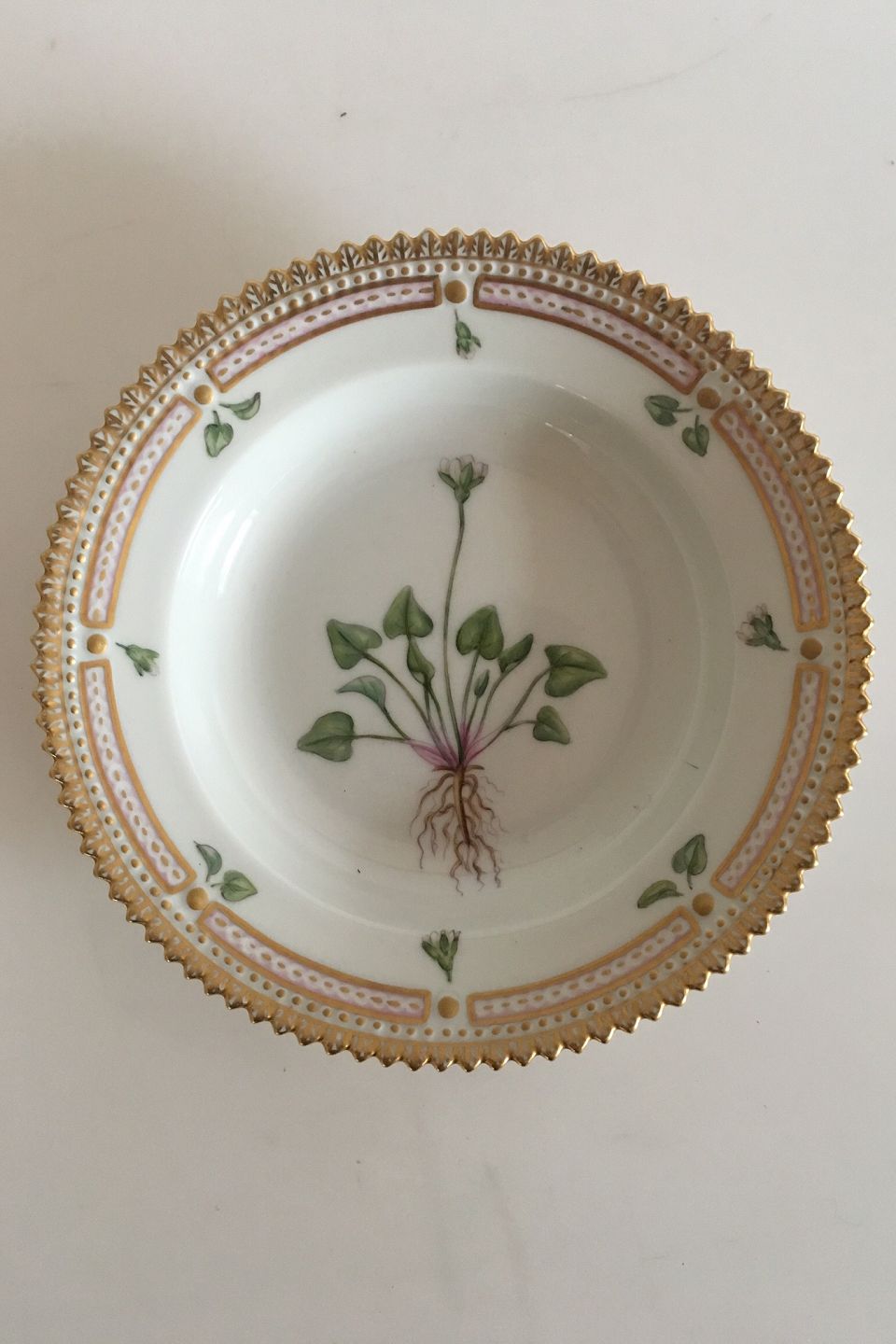 Royal Copenhagen Flora Danica Fruit Saucer 20/3590 new number 601. The flower is: Parnassia Kotzebuei cham & Schldl. Measures 14,5cm / 5 7/10", first quality and in perfect condition.