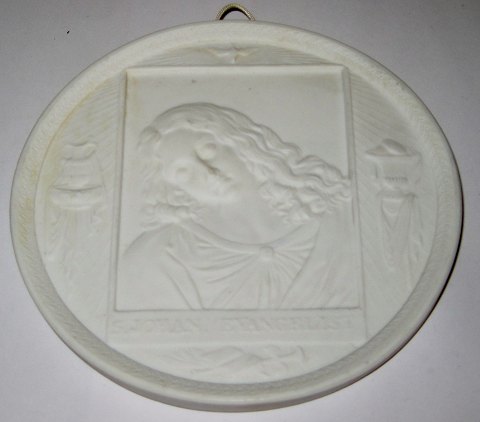 Royal Copenhagen Bisque Plate with motif of St. Johan Evangelist made in 1820-1850. Måler 13cm (5.11 inches). In perfect condition.