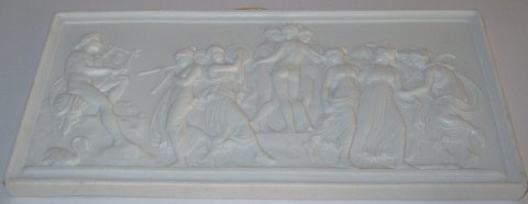 Bing and Grondahl Relief Plate By Thorvaldsen. The muses Dance on Helikon (122). Measures 24cm x 12cm and is in good condition. First time made in 1862 at the factory. This one is from the time around 1862.