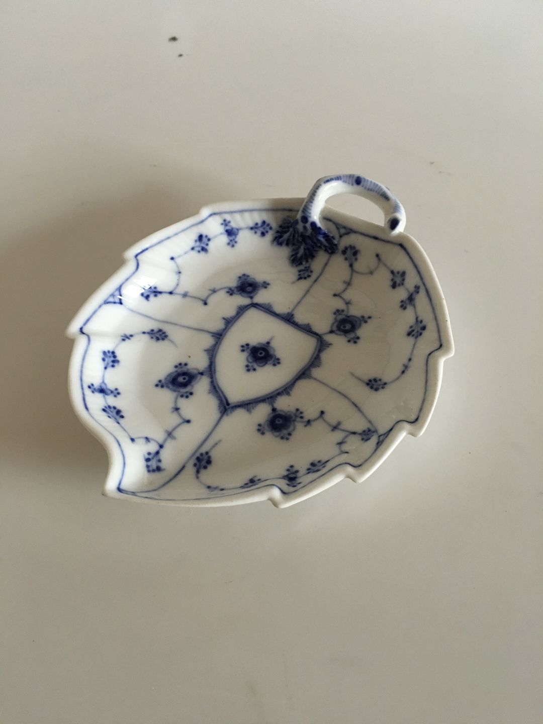 Antique Royal Copenhagen Blue Fluted Plain Leafshaped Cake Dish No 143 from 1850-1880. 15.5 cm (6 7/64")