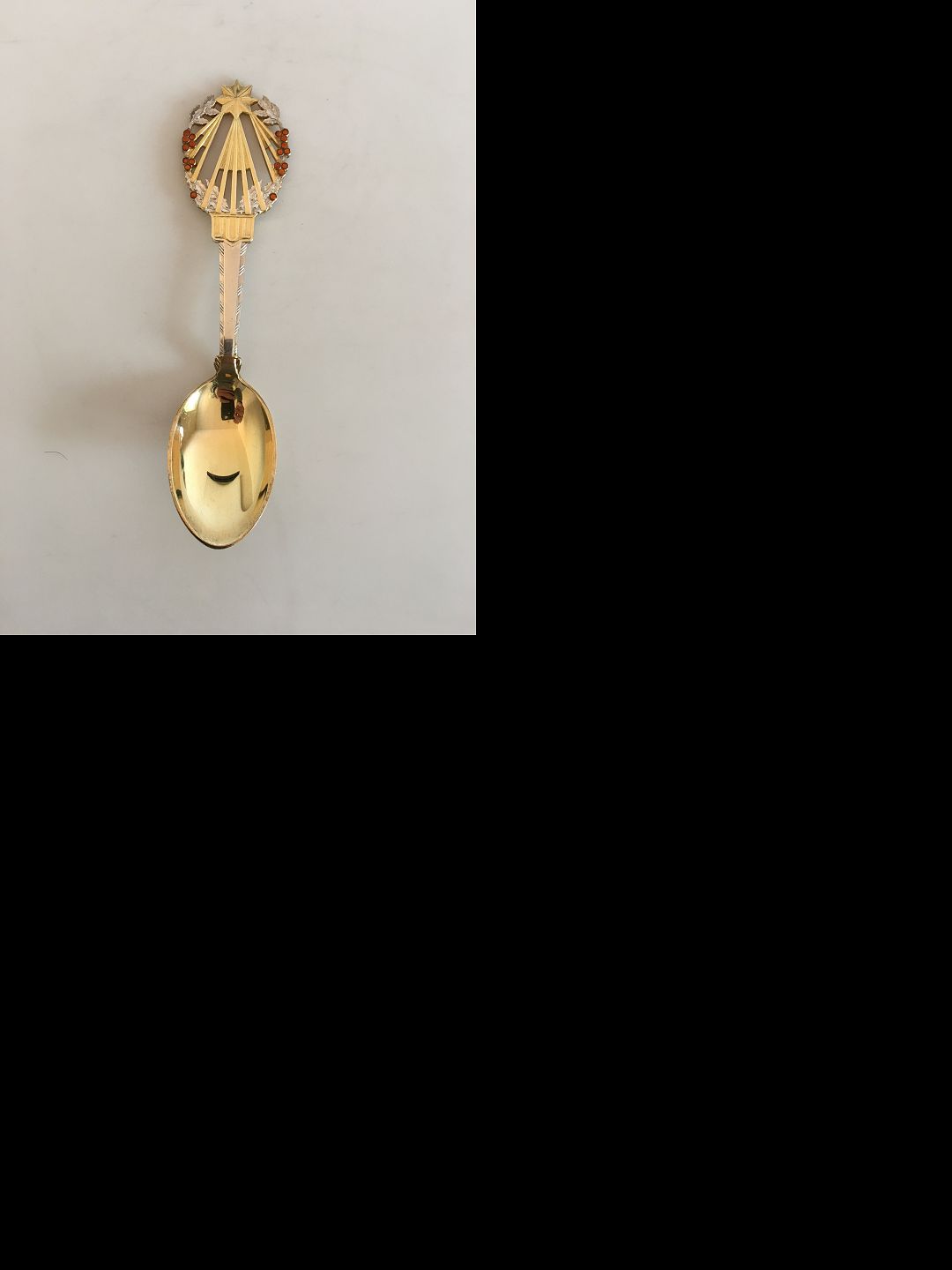 Anton Michelsen Christmas Spoon 1922 Gilded Sterling Silver with Enamel.