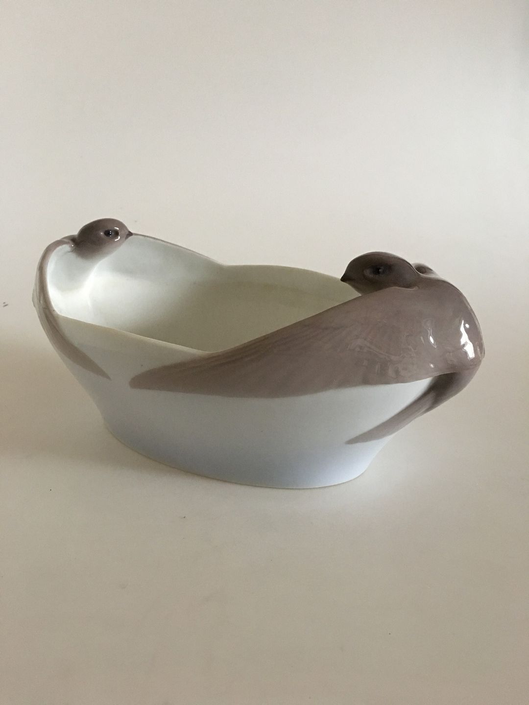 Royal Copenhagen Bonbonniere with two swollows. Measures 31cm and 13cm high. In good condition, but has been sanded down on the corner. Therefore it is a second.