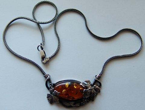 N.E.From Necklace with chain in Sterling Silver and Amber. Pedent measures 4,2cm and with chain 41,5cm and is in good condition.