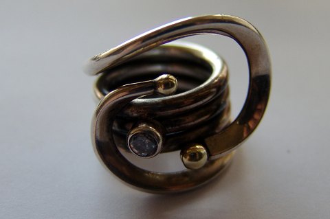 Blicher Fuglsang Ring in Sterling Silver with Stone. Partly gilded and in a nice modern design.