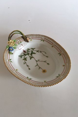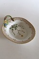 Royal Copenhagen Flora Danica Leafshaped dish with handle 20/3541 new number 357. The flower is: "Potentilla nivea L.". Measures 24,5cm, first quality and in perfect condition.