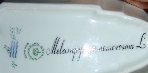 Royal Copenhagen Flora Danica Large pickle dish 20/3544 new number 344. The flower is: "Melampyrum nemorosum L". Measures 21cm, first quality and in perfect condition.