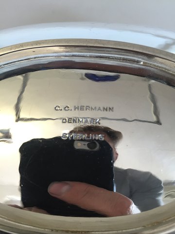 C C Hermann Modern Sterling Silver Dish with handle. Measures 24cm long, 7cm high and 12,2cm wide. In good condition.