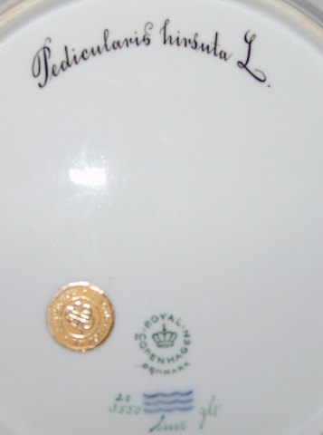 Royal Copenhagen Flora Danica Lunch Plate 20/3550 new number 622. The flower is: "Pedicularis hirsuta L". Measures 22cm, first quality and in perfect condition.