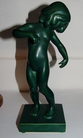 Little girl in jade green ceramic 888 Venus Kalipygos Design Kai Nielsen 21 cm from Ipsen Danish Art Pottery 1843-1955. In perfect condition.