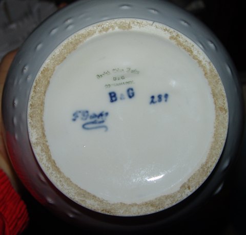 Bing and Grondahl Unique vase by Fanny Garde from 1895-1897. Measures 16cm high. Is in one piece. But has many burning bubbles.