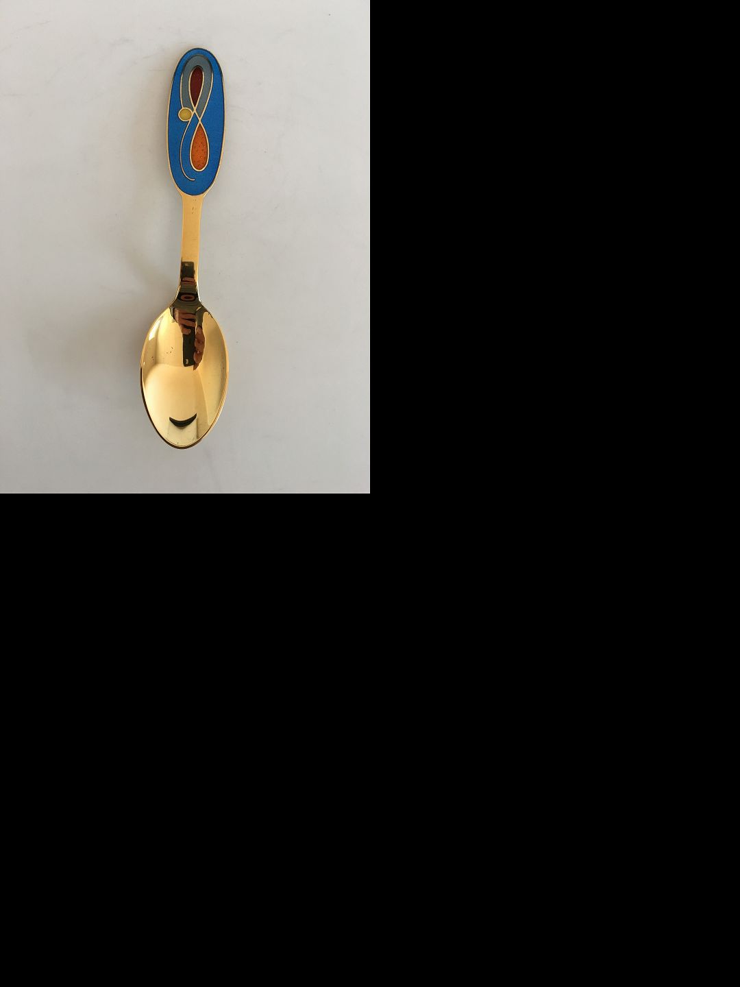 Anton Michelsen Gilded Sterling Silver Christmas Spoon 1992. In good condition. Designed by: Tom Krøjer , f. 1942, Danish artist, trained mason's apprentice. Krøjer who also studied art at KONSTHÖGSKOLAN in Stockholm, experimented in the 1960s with films and happenings, inspired by Fluxus and his stay at Drakabygget in Scania with Jens Jorgen Thorsen. His painting was later influenced by pop art and System: Strong, bright colors in an imaginative idiom in which figurative and abstract pictorial elements are mixed. Everyday scenes in a light-filled color were hallmarks of the 1980s. Krøjer has done several decorations. Since 1983 he has been a member of Grønningen.