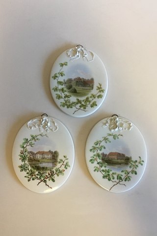 Three Royal Copenhagen Oval Wall plates with typografical motifs from 1870-1880 by Emil Cordius Heinrich Orth. They measure 18cm and is in pretty good condition. Two plates have chips on the back, on the sides. Plus the top decoration have tiny chips. Items are signed O... for Emil Cordius Heinrich Orth.