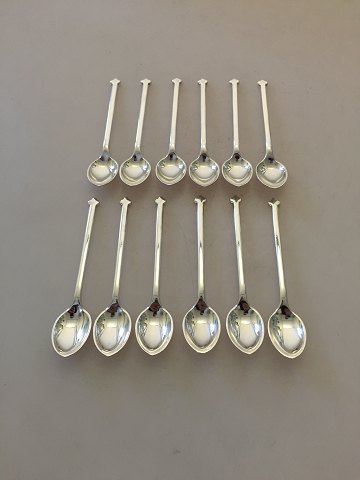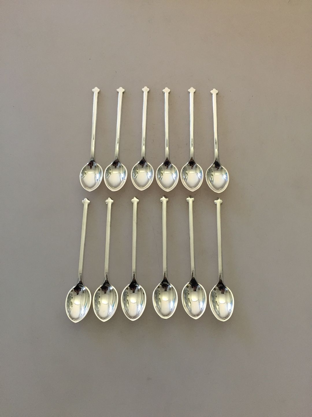 Hans Hansen 12 coffee spoons in Sterling Silver designed by Karl Gustav Hansen. Measures 10,4cm and are in really good condition. Comes with the original box.