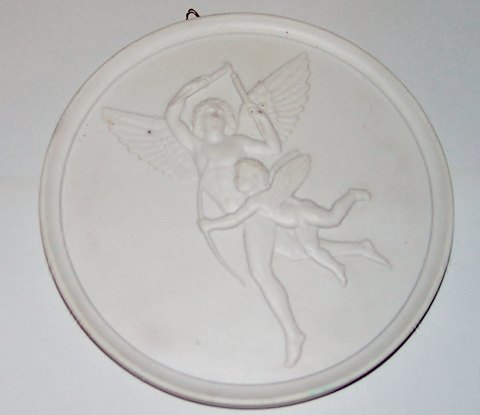 Royal Copenhagen Bisque Plate Amor and Hymen No 73. Copy by Christian Christensen from 1843 after Thorvaldsens original from Nysų 1840. Measures 13cm