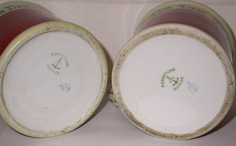Rare pair of porcelain mugs from Porsgrund, Norway. Made around 1910. In absolutly perfect condition. Factory marked in blue and green.
