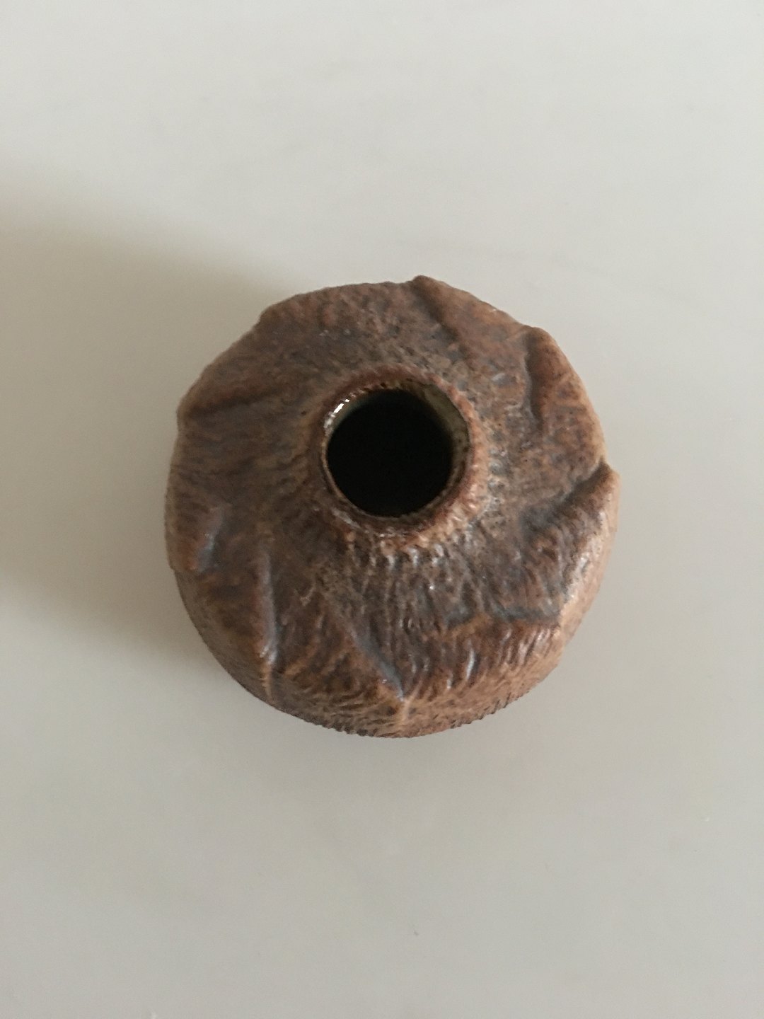 Royal Copenhagen Melike Ababiyanik miniature vases. Marked with 3 waves, Denmark, 22133 and M. incised. Measures 3 1/8" dia. 1 1/2" high. In perfect condition