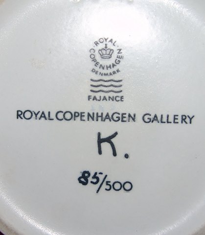 Royal Copenhagen Bo Kristiansen Vase No 3849. Measures 12cm dia and 7cm high. Is in perfect condition. Marked with the RC logo, Fajance, Royal Copenhagen Gallery, K. and 85/500.