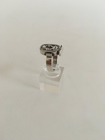 Hans Hansen Sterling Silver Ring with Egyption motif Maat. In good condition. Ring Size 58.