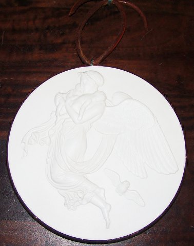 Bing and Grondahl Bisque Plate Night No 123. Copy from 1840 after Thorvaldsens original from Rom 1815. Measures 21,5cm (8.46 inch). Gravestone Plate. Mounted with a leather scrap.
