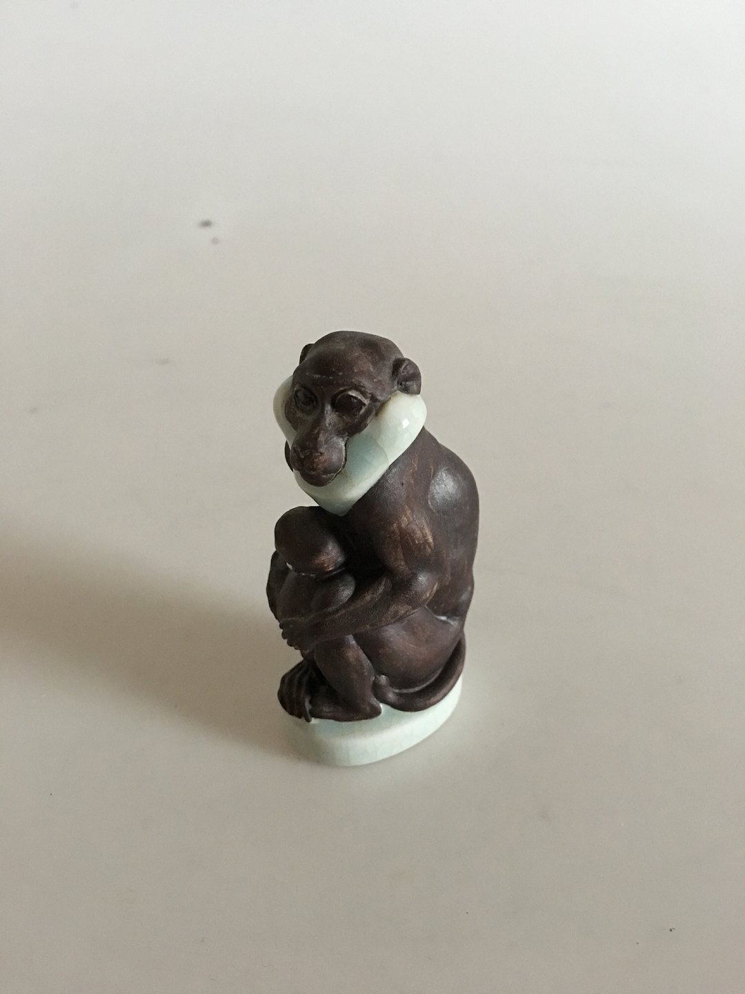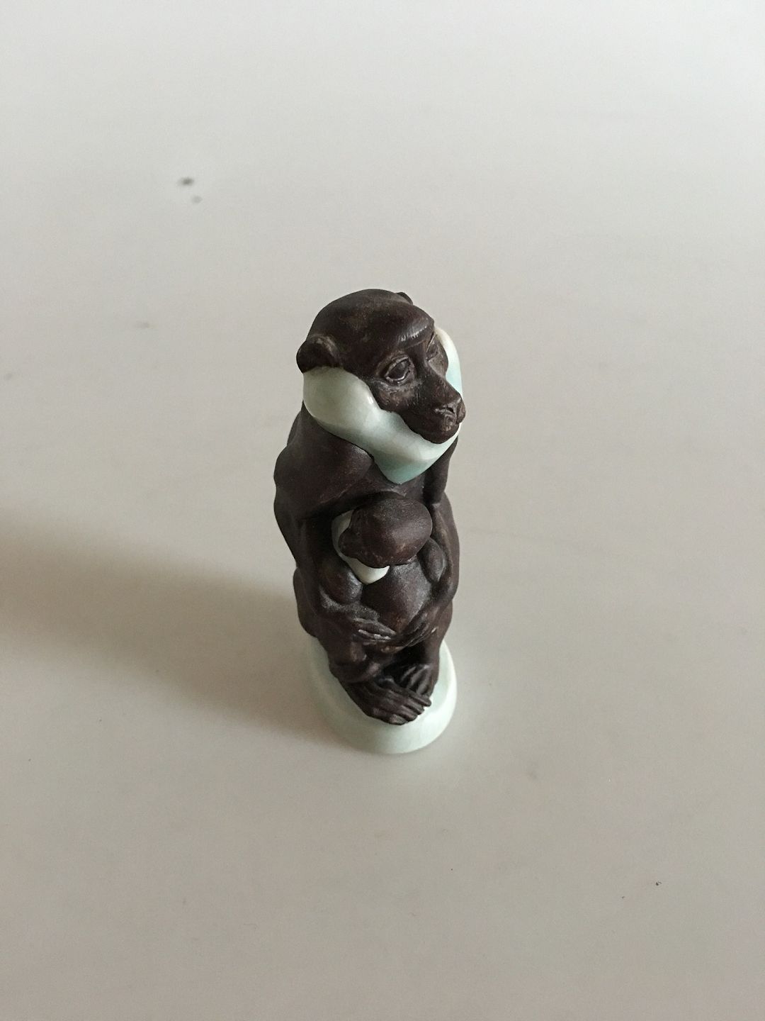 Royal Copenhagen Stoneware Jeanne Grut Monkey and Monkey with Young figurines. Measures 7,5cm and 3,5cm
