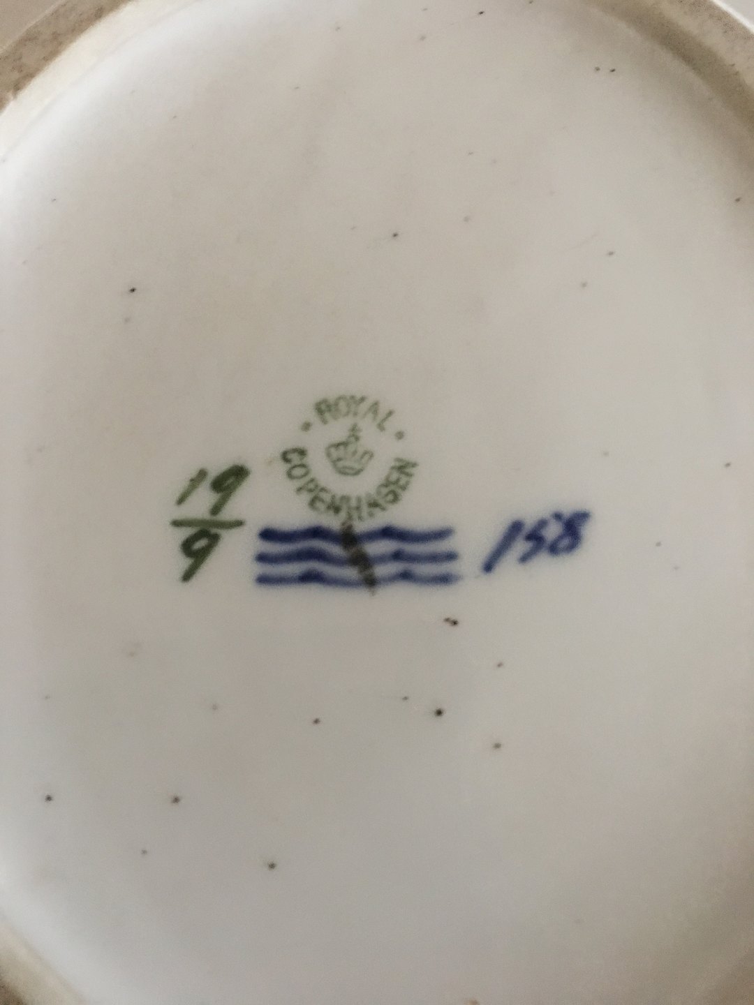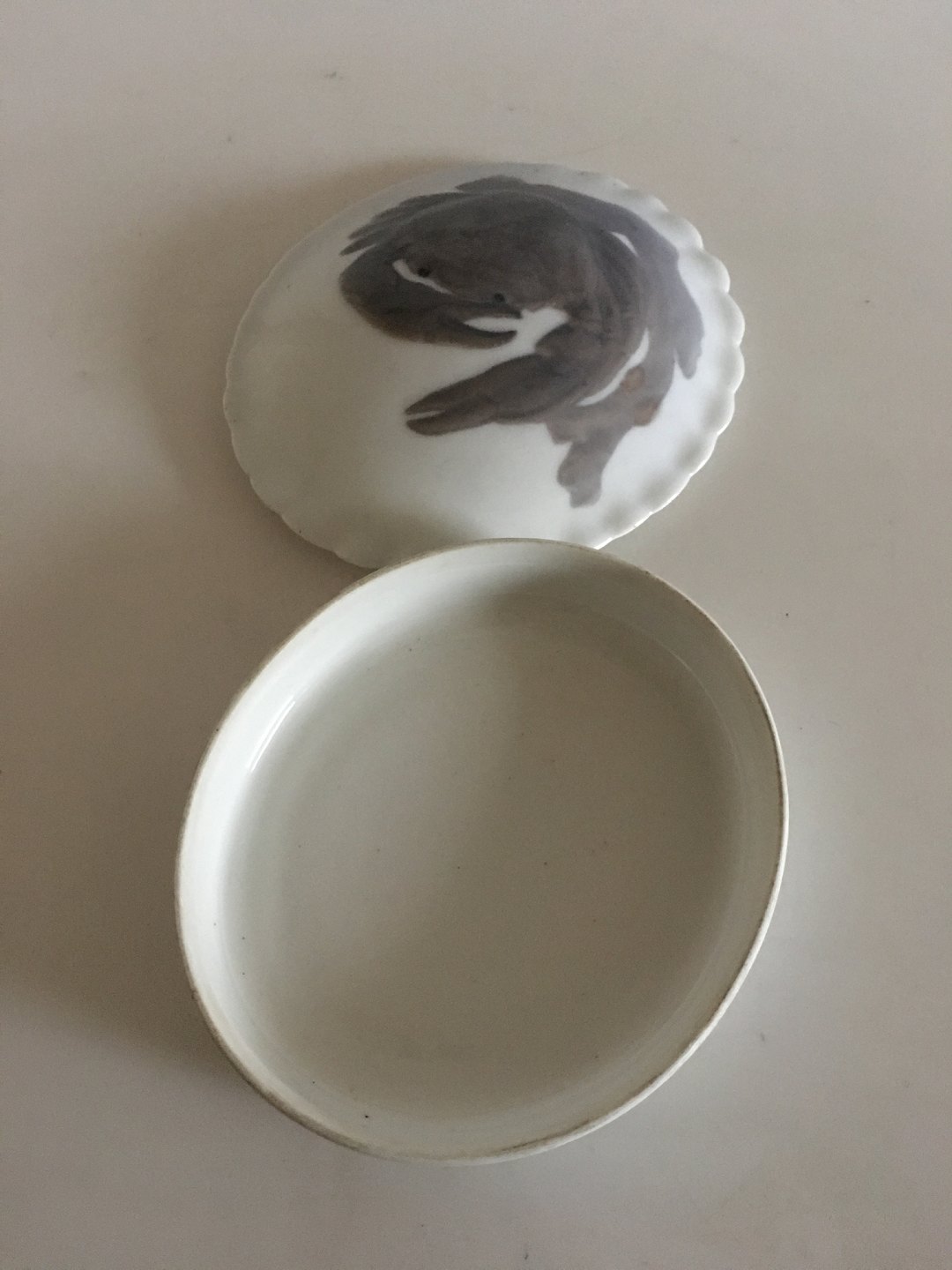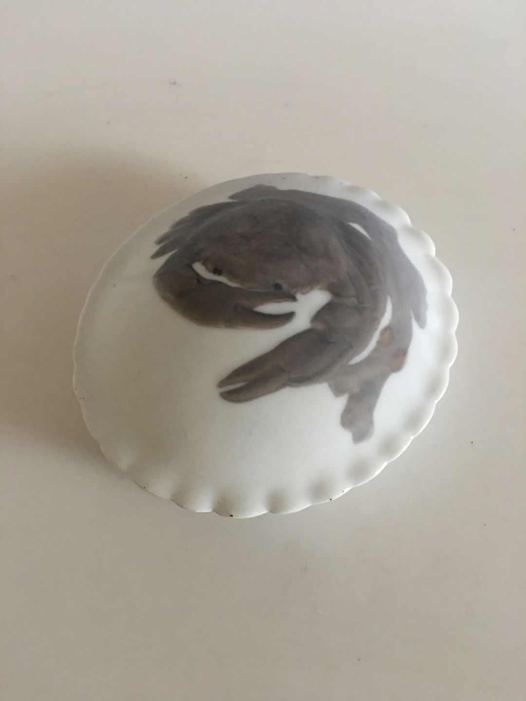 Royal Copenhagen Art Nouveau Crab Lidded bowl No 19/9. Measures 15,5cm and is in good condition. Has a factory burning crack, see picture. Is marked a second.