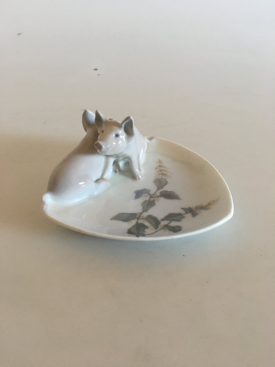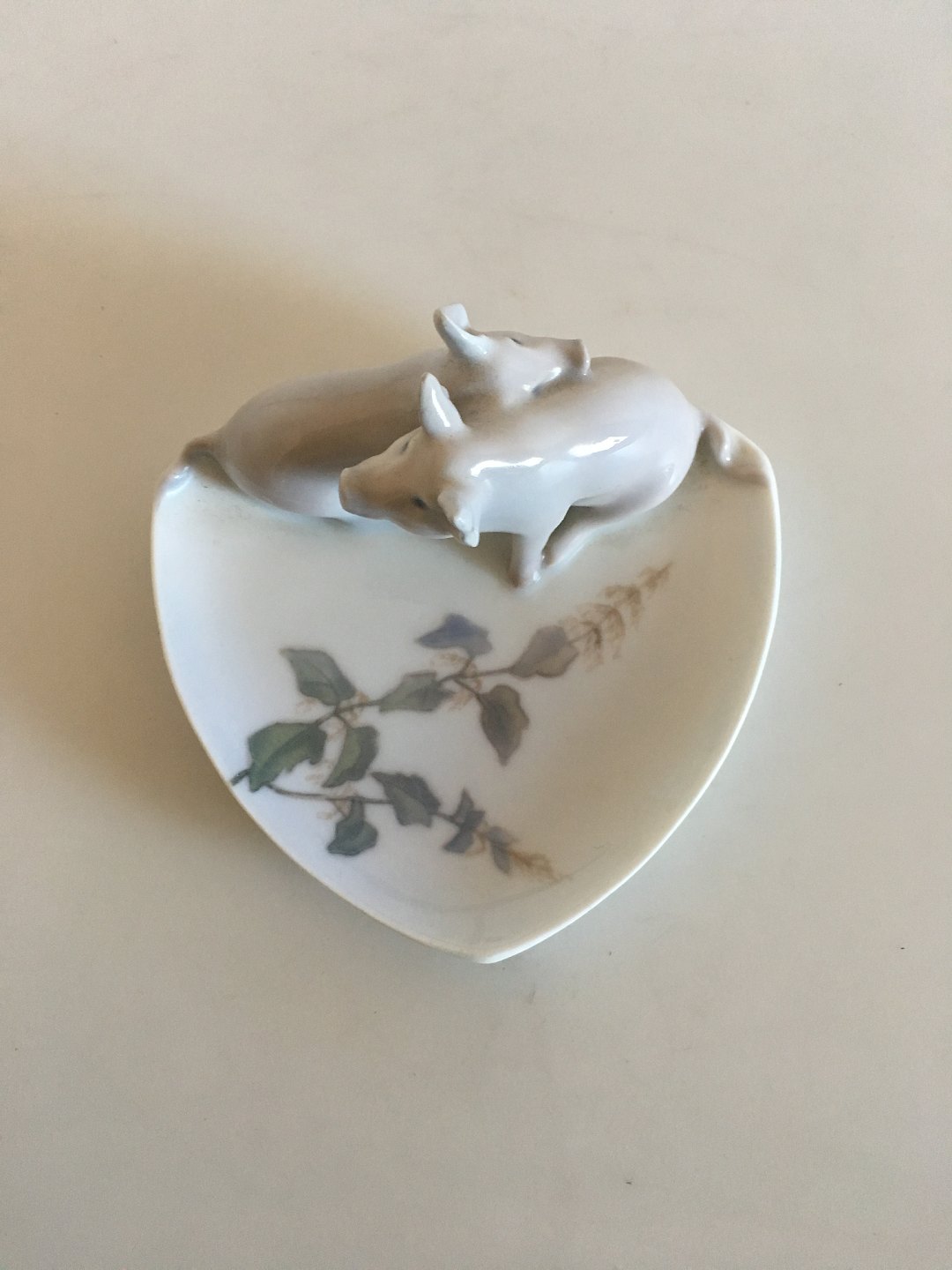 Royal Copenhagen Art Nouveau Dish with two pigs No 1233/953. Measures 11,5cm. In good condition, but the pigs has been repaired. Not something that shows, but the pigs have been repaired on the bagside. Very well done.