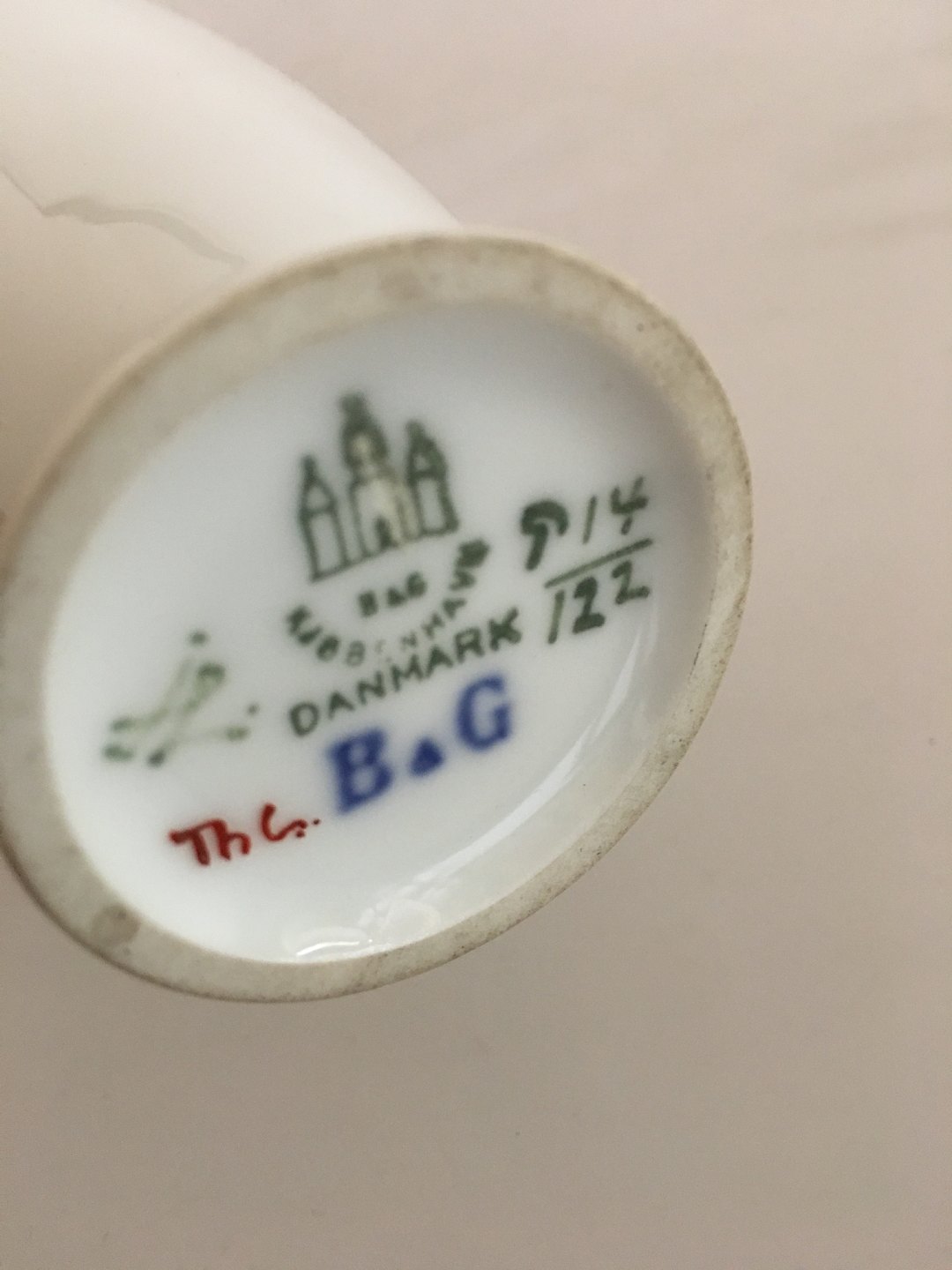 Bing and Grondahl Art Novueau Unique Vase by Theodor Larsen. Measures 22cm and is in perfect condition. Rarely seen form on vase and the decoration is very rare.