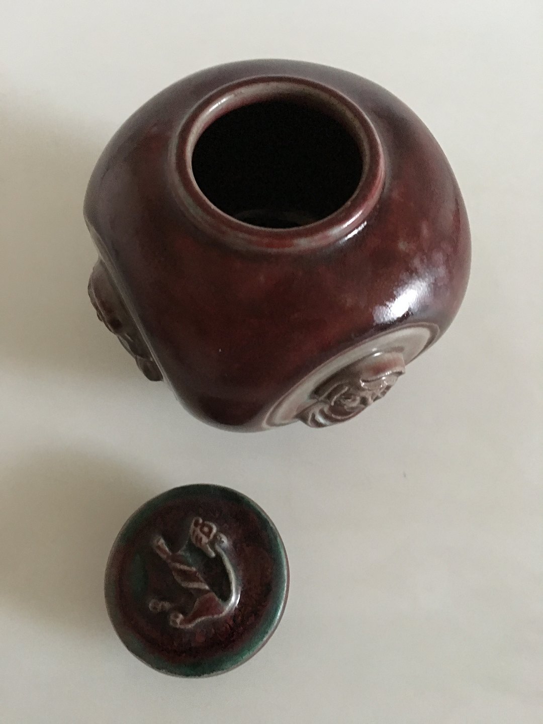Royal Copenhagen Stoneware vase in Oxblood glaze by Jais Nielsen 97/2798. Measures 10,5cm and is in good condition.