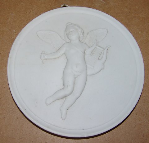Bing and Grondahl Bisque Plate Poesi Genius No 104. Copy of original from 1838 done by Pietro Galli after drawing by Thorvaldsen. Measures 14,5cm (5.70 inches). Has a chip 6 o'clock