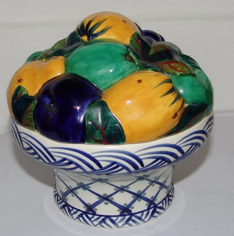 Aluminia Fruit Basket with lid No 603/515. Measures 12,5cm high and 13,5cm dia. In good condition.