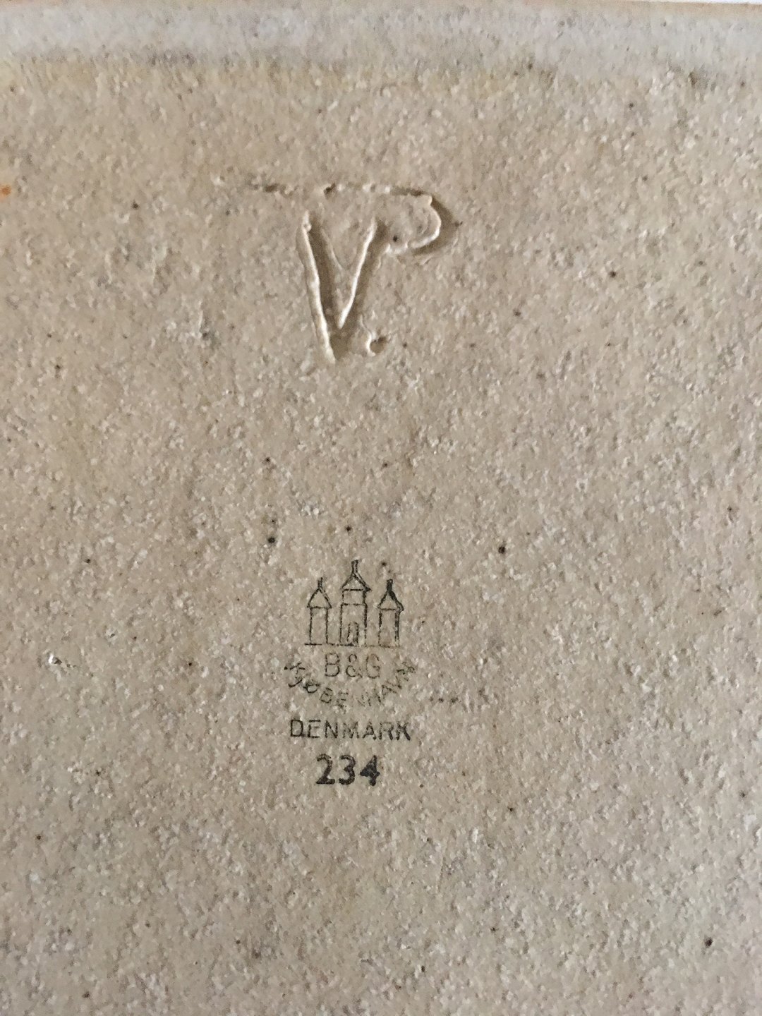 Bing & Grondahl Stoneware Bowl by Valdemar Petersen No 234. Measures 15cm and is in good condition.
