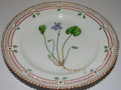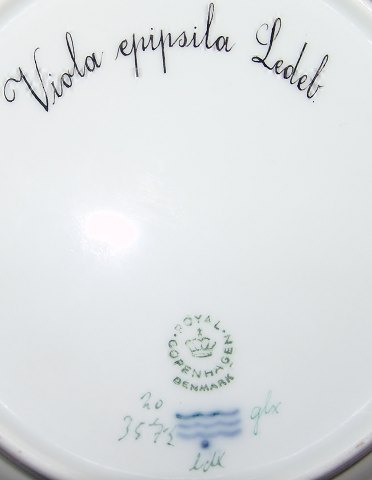 Royal Copenhagen Flora Danica Salad Plate No 3573. Measures 20cm. Latin name "Viola epipsila Ledeb". Has a chip on the rim, but otherwise in good condition.