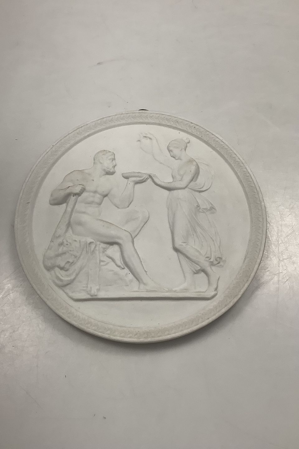 Royal Copenhagen Bisque Plate Herkules receives the drink of iternal life from Hebe No 108. Copy from 1846 by Th. Mule after Thorvaldsens original from Rom 1808. Measures 14cm (5.51 inches).