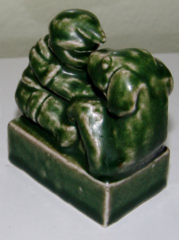 Rare Royal Copenhagen Stoneware Figurine No 22157 by Henry Herup of a Gnome and Dog. Measures 8,2cm high and is in good condition.