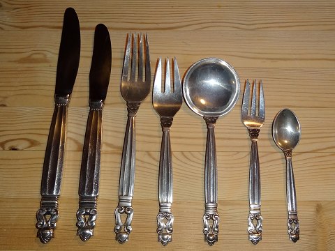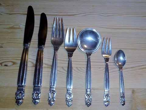 Georg Jensen Acorn Sterling silver Flatware set for 12 persons with serving pieces 92 pieces total.